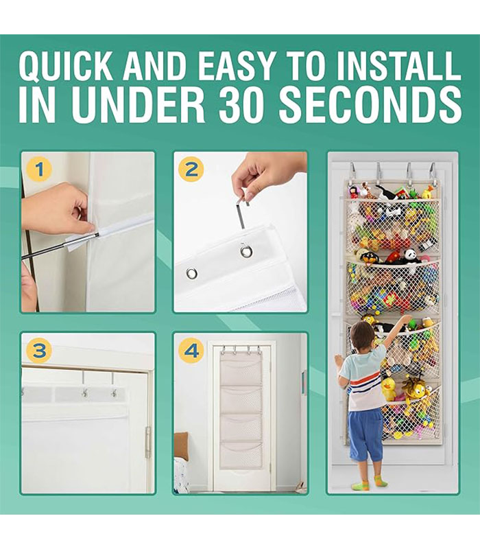 Convenient Storage – Easy-to-set-up over-the-door organizer with breathable mesh pockets for fresh and clean stuffed animals.