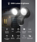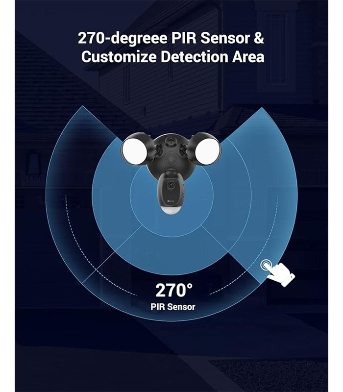 - Bright Dual Floodlights: 2,000-lumen adjustable LED lights with flexible direction via EZVIZ App (hardwired).
