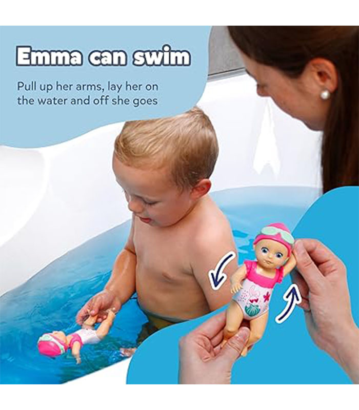 • Colourful water-play toy with a wind-up mechanism to make Emma swim