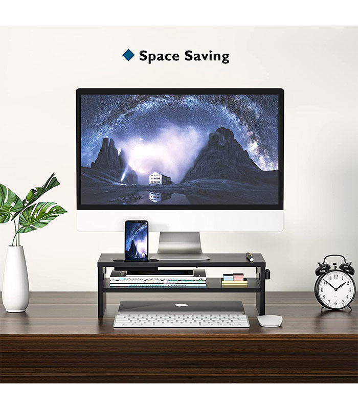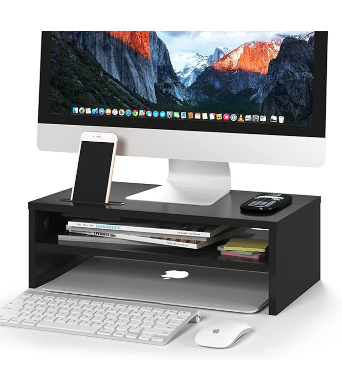 BONTEC Wood Monitor Stand Riser with Phone Holder & Cable Management