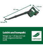 - Powerful radial fan: Delivers a powerful blowing performance for fast debris removal