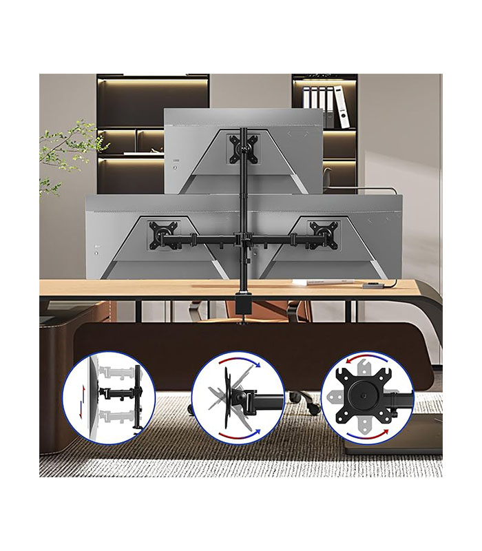 Triple Monitor Mount – Holds 3 screens (13″-27″) to save desk space and enhance setup.