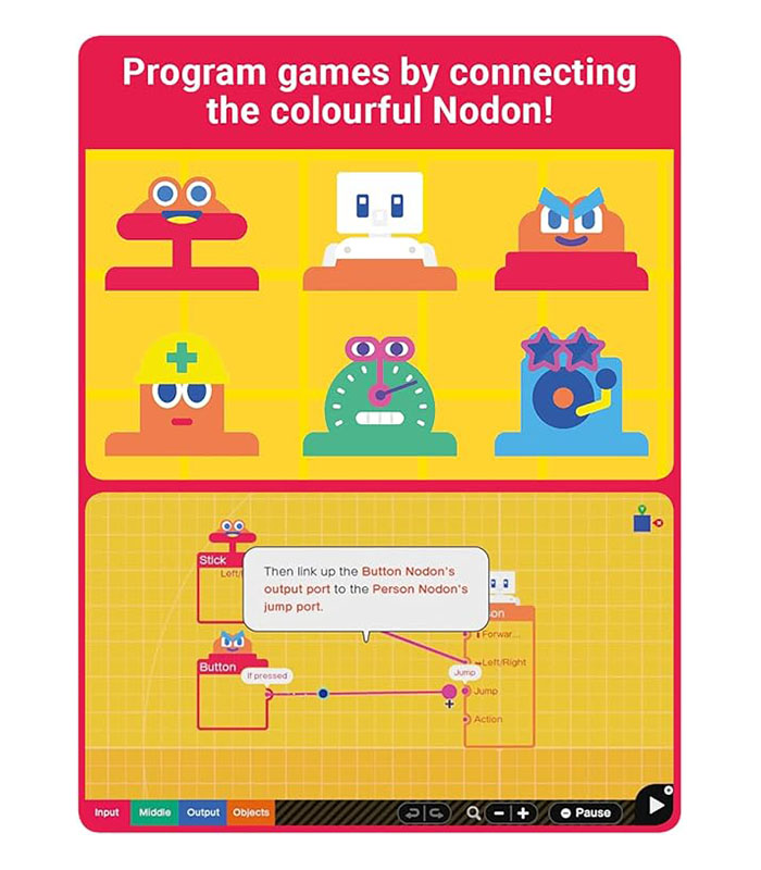 Meet the Nodon: Unique characters that control game functions like movement, music, and physics.