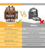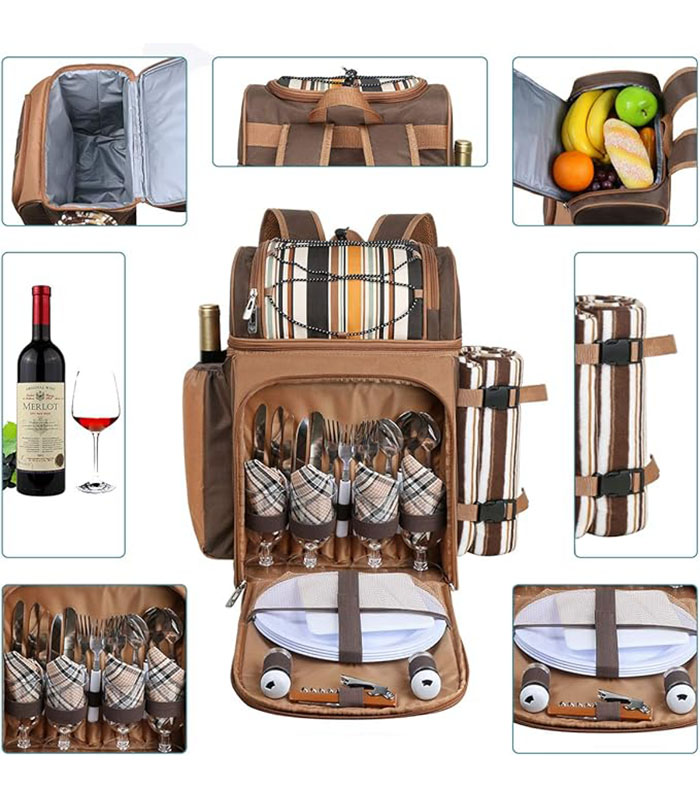 Durable Build: Strong polyester with waterproof coating, heavy-duty zippers, and sturdy plastic tableware.