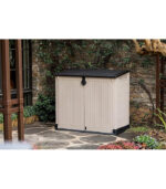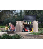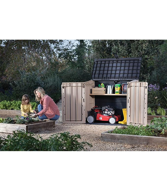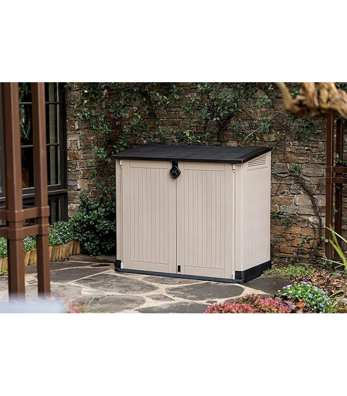 - Ideal outdoor storage solution for garden tools and equipment, BBQ and accessories and x2 120L wheelie bins