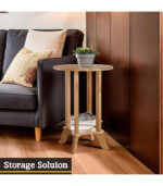 Space-Saving Design: Compact round side table with bottom shelf for extra storage.