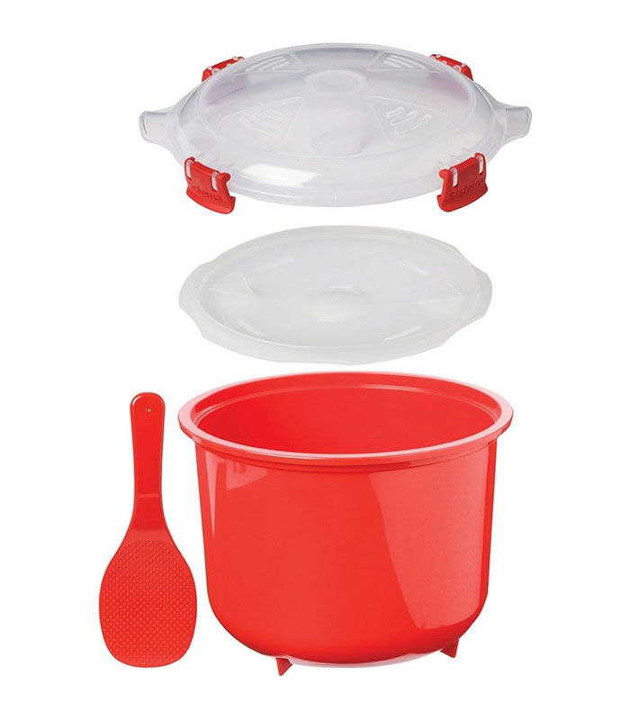 - Microwave rice steamer designed to cook rice, polenta and couscous