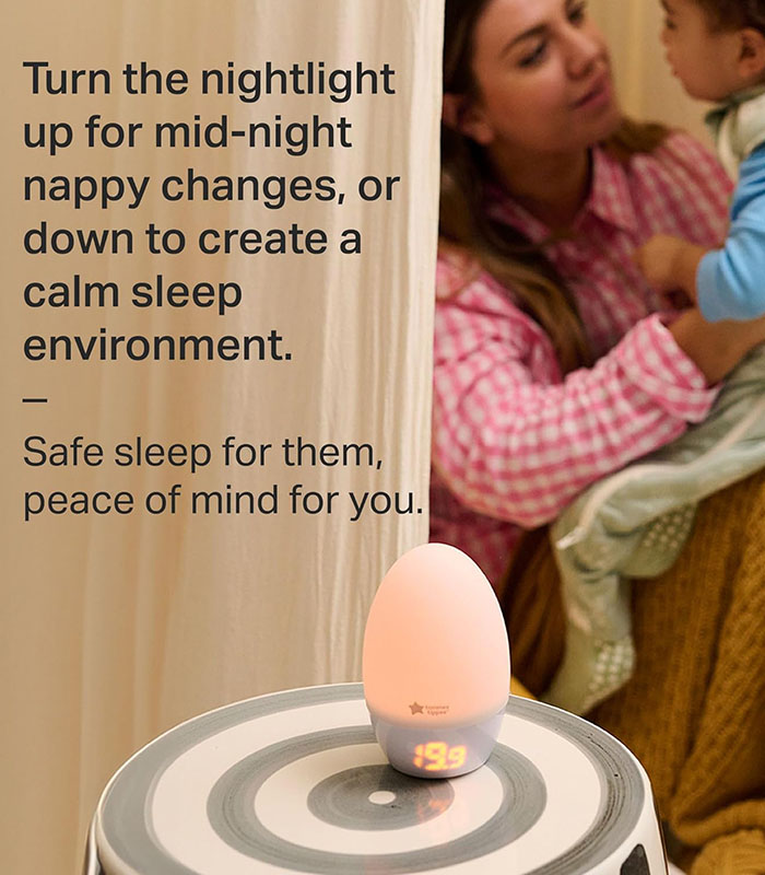 - Adjustable brightness: Three brightness levels. Turn the nightlight up for mid-night nappy changes, or down to create a calm sleep environment.