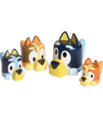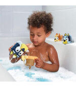 Fun bath toy set featuring Bluey, Bingo, Chilli, and Bandit